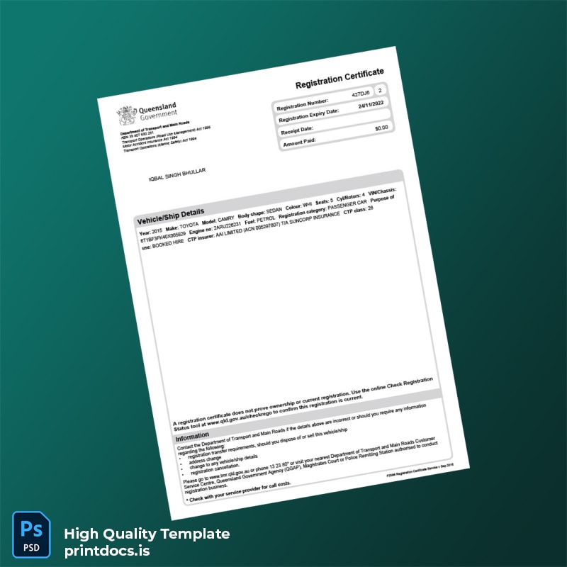Struggling with lost or expired vehicle registration documents can disrupt your professional workflow. The Australia Department of Transport Vehicle Registration Certificate Template (Word & PDF) offers a practical and editable solution designed for professionals seeking quick and easy document replacement.