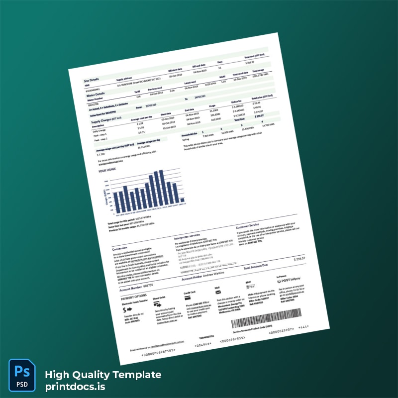 Authentic-Looking Australian Energy Bill Design