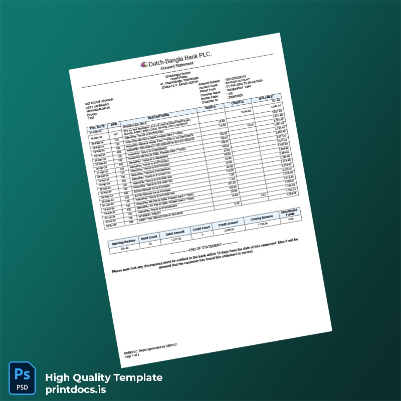 Bangladesh DBBL Bank Statement Template: Your Solution to Instant Documentation