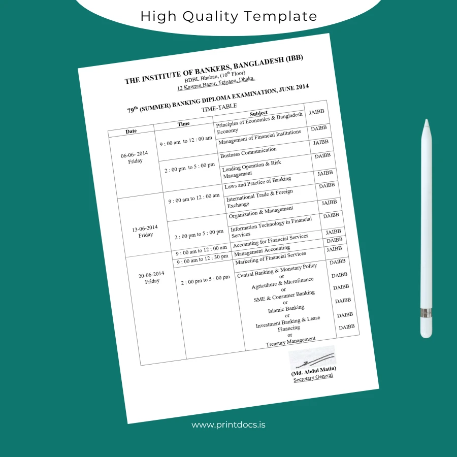 Editable and Professional Bangladesh Institute of Bankers Banking Diploma Template