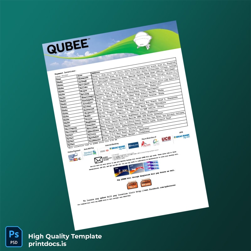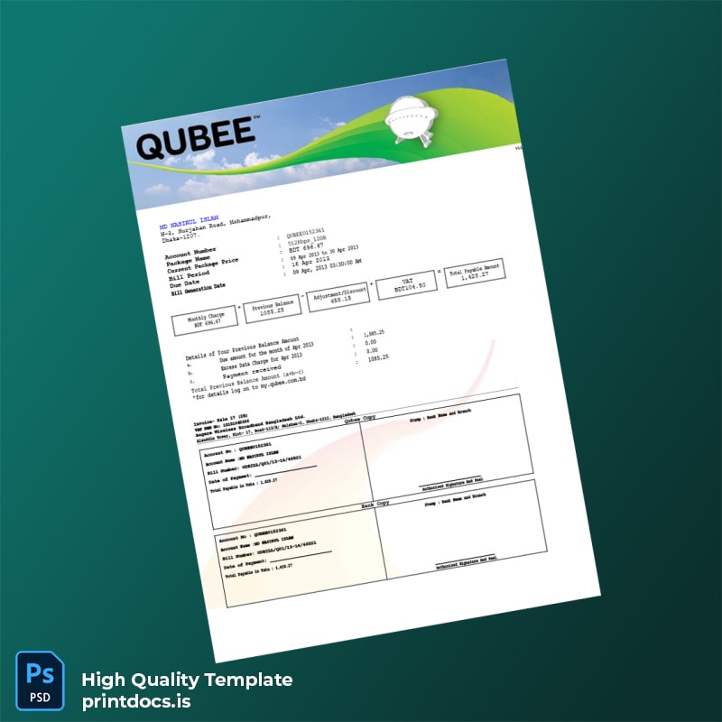 Bangladesh Qubee Editable Utility Bill Template in Word and PDF Formats