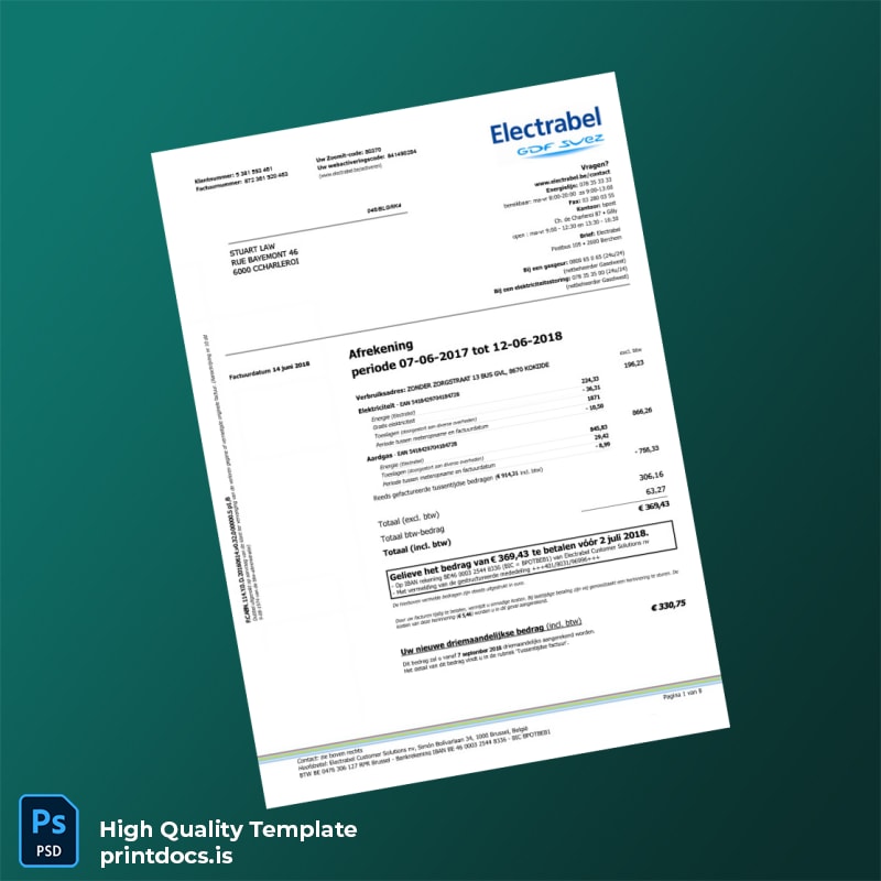 Belgium Electrabel Customer Solutions Nv Editable Utility Bill Template Overview