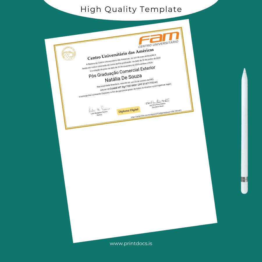 Facing the challenge of replacing or customizing your postgraduate diploma? The Brazil Centro Universitário das Américas Postgraduate Diploma in International Business Template (Word & PDF) offers a seamless, professional solution designed for educators, alumni, and professionals seeking a high-quality customizable degree template. This digital product allows you to quickly update all necessary details including name, dates, and course information while maintaining a clean and official appearance.