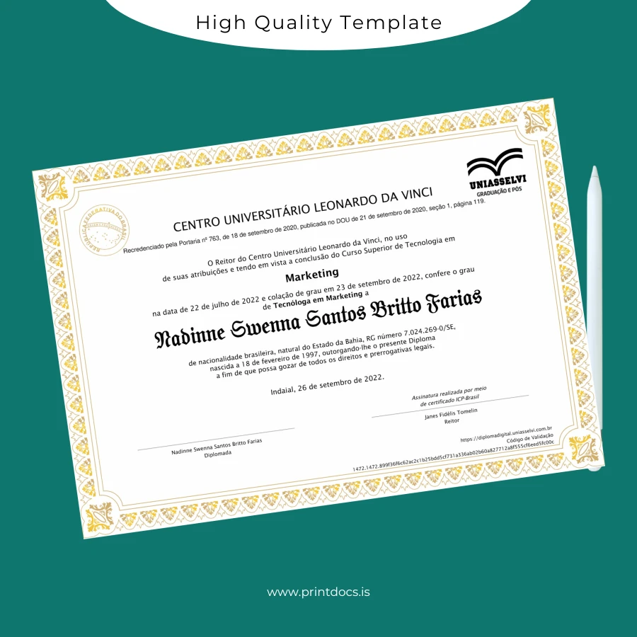 Facing the challenge of replacing or updating your official diploma? The Brazil Centro Universitário Leonardo da Vinci Technology Degree in Marketing Template (Word & PDF) offers a seamless solution for professionals who need a pristine, editable diploma template that reflects their academic achievements with accuracy and style.