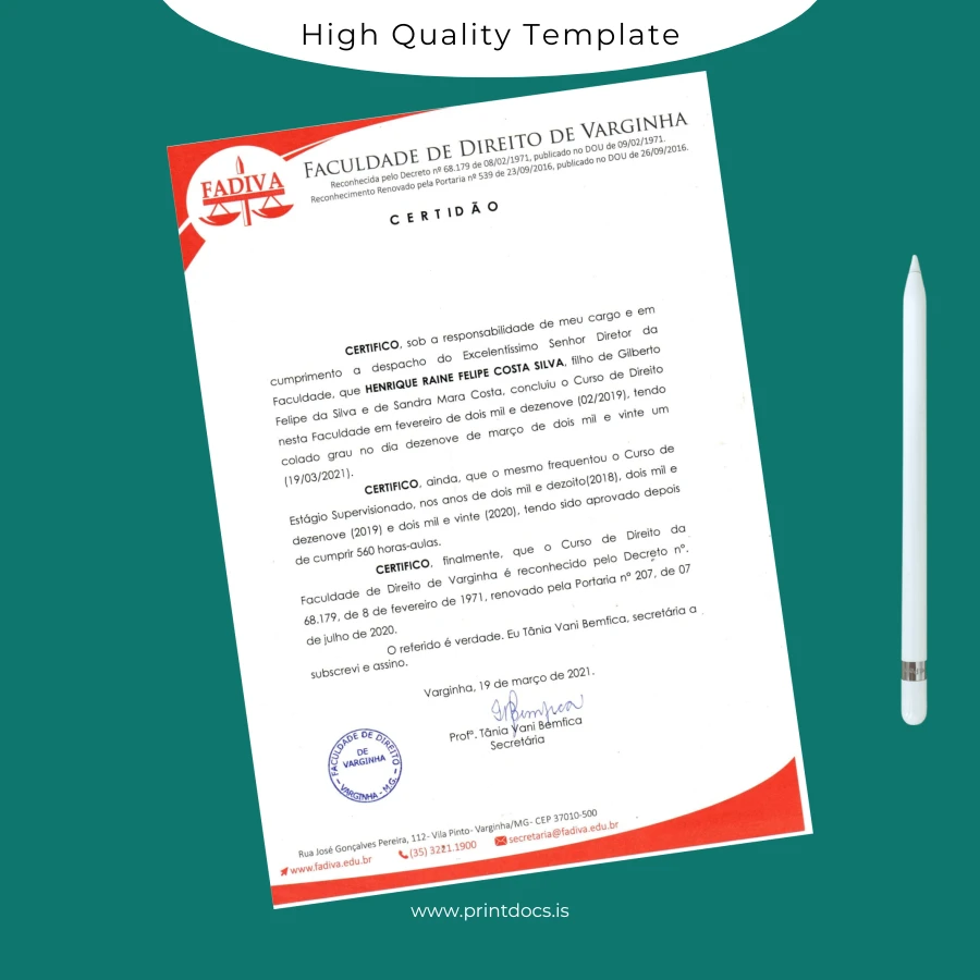 Why Choose the Brazil FADIVA University Diploma in Law Certificate Template?