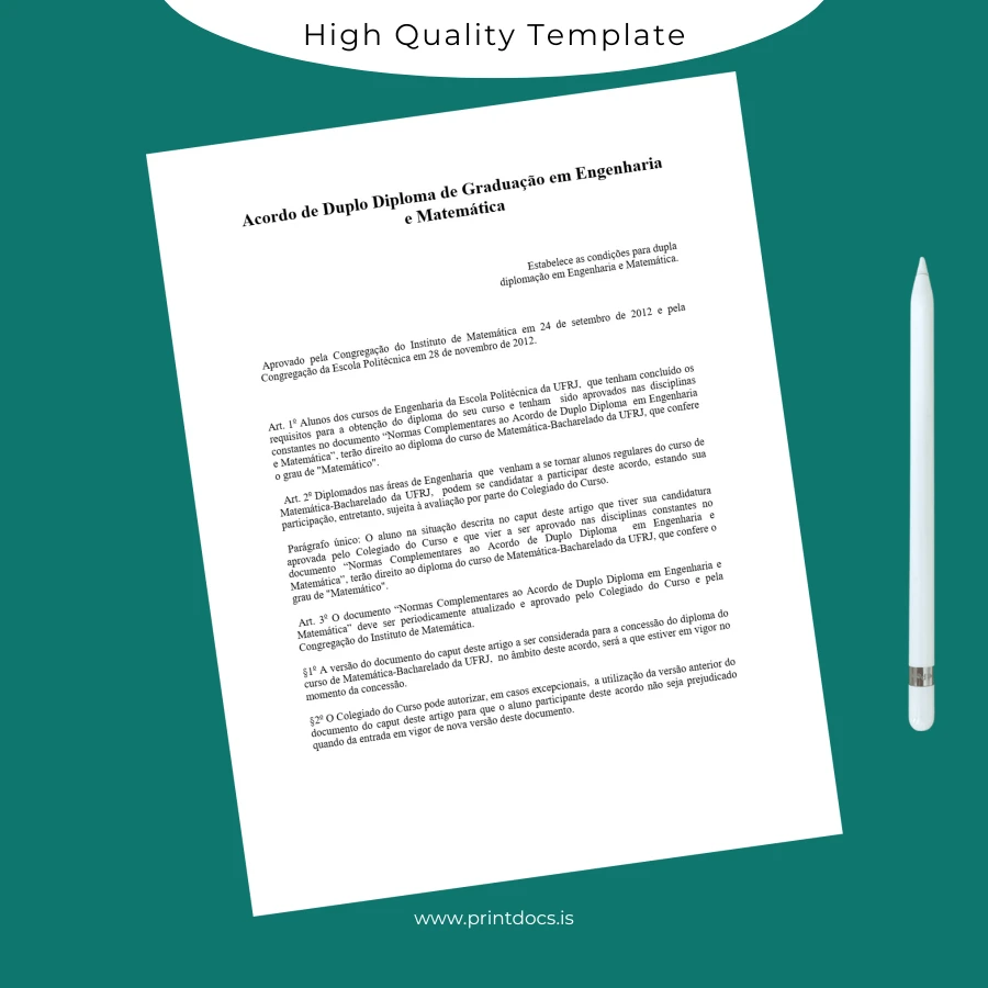 Facing the challenge of creating a professional, editable diploma quickly? This Brazil Federal University of Rio de Janeiro Dual Degree Agreement in Engineering and Mathematics Certificate Template (Word & PDF) offers the perfect solution for educators, administrators, and students needing a customizable, print-ready diploma design.