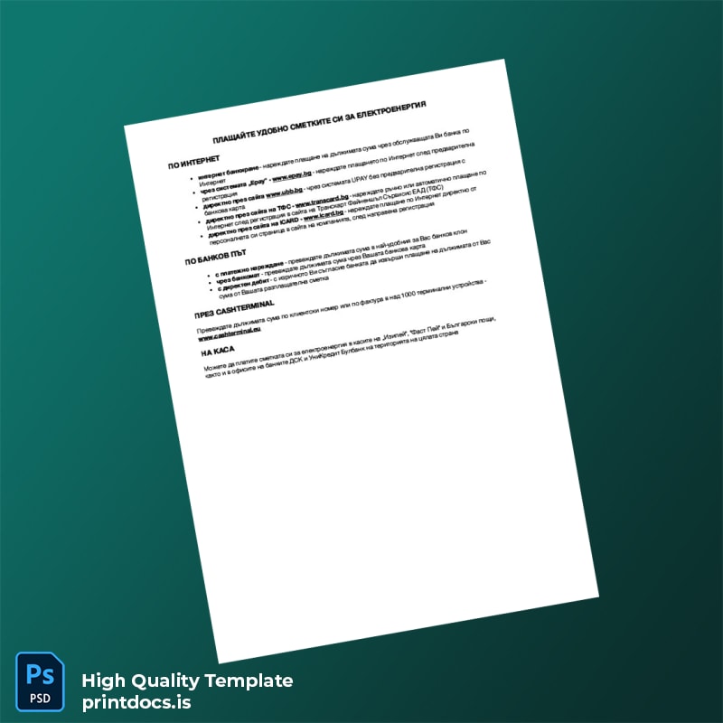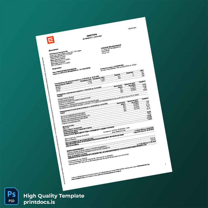• Designed specifically to replicate Bulgaria’s CEZ Electro Bulgaria AD utility bills for official appearance.