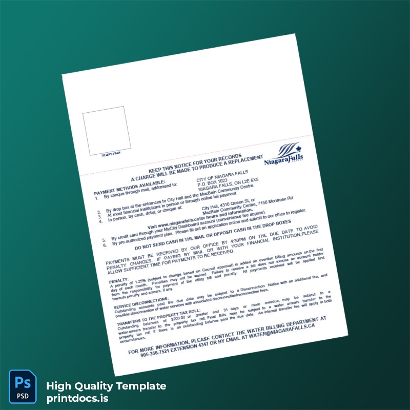 Canada City Of Niagara Falls Editable Water Bill Template in Word and PDF Formats