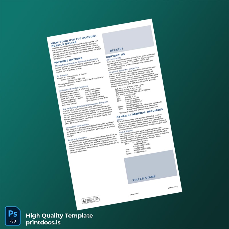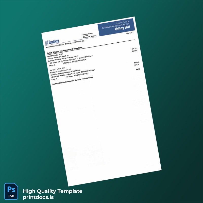 Canada City Of Toronto Editable Utility Bill Template in Word and PDF Formats