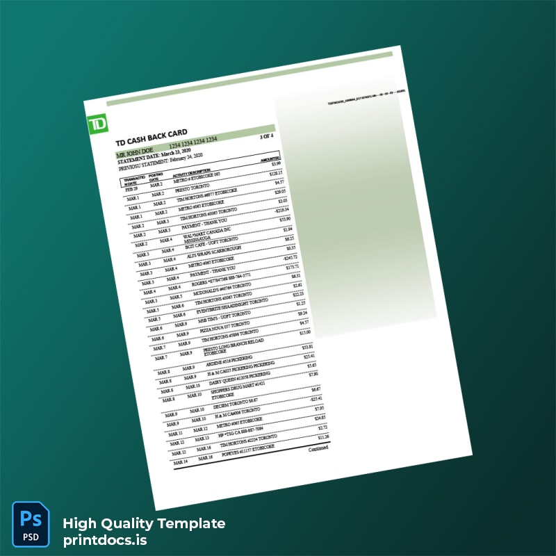 Don’t let administrative challenges stand in the way of your progress. Equip yourself with the Canada TD Bank Credit Card Statement Template and streamline your documentation process today. Visit this external link for more insights on bank statement templates that elevate professionalism in your documents. Make the smart move and download your template now!