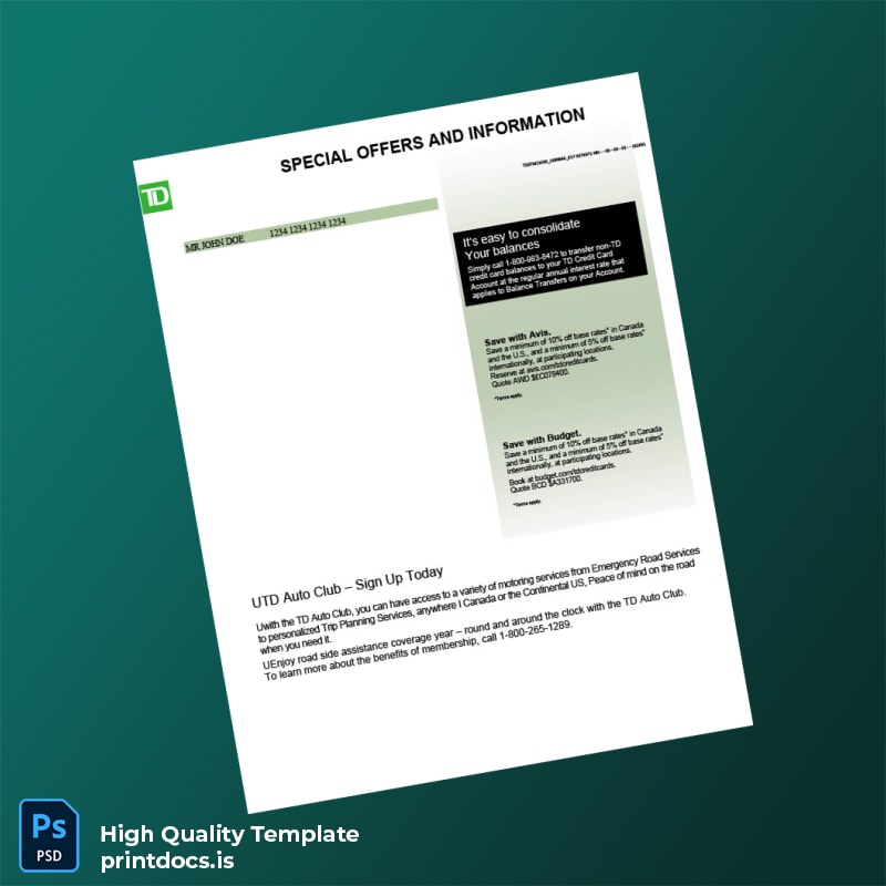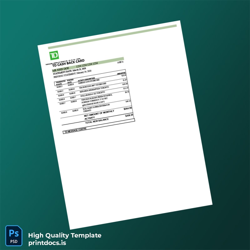 With the Canada TD Bank Credit Card Statement Template, you’ll benefit from: