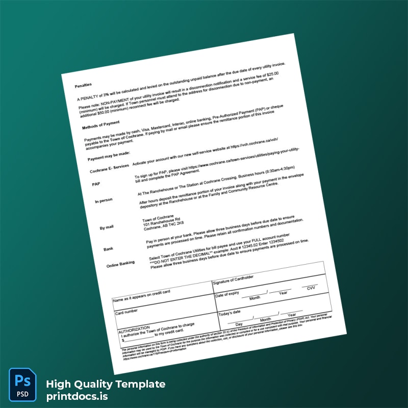 The Canada Town Of Cochrane Editable Water Bill Template offers a seamless solution for professionals needing a reliable and customizable utility bill proof of address template. Designed for quick editing and effortless document management, this template is available in both Word and PDF formats to suit a variety of official and personal requirements.
