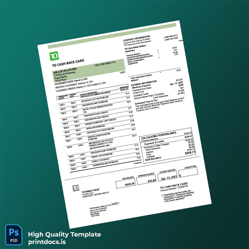 Transform Your Documentation with the France TD Bank Statement Template