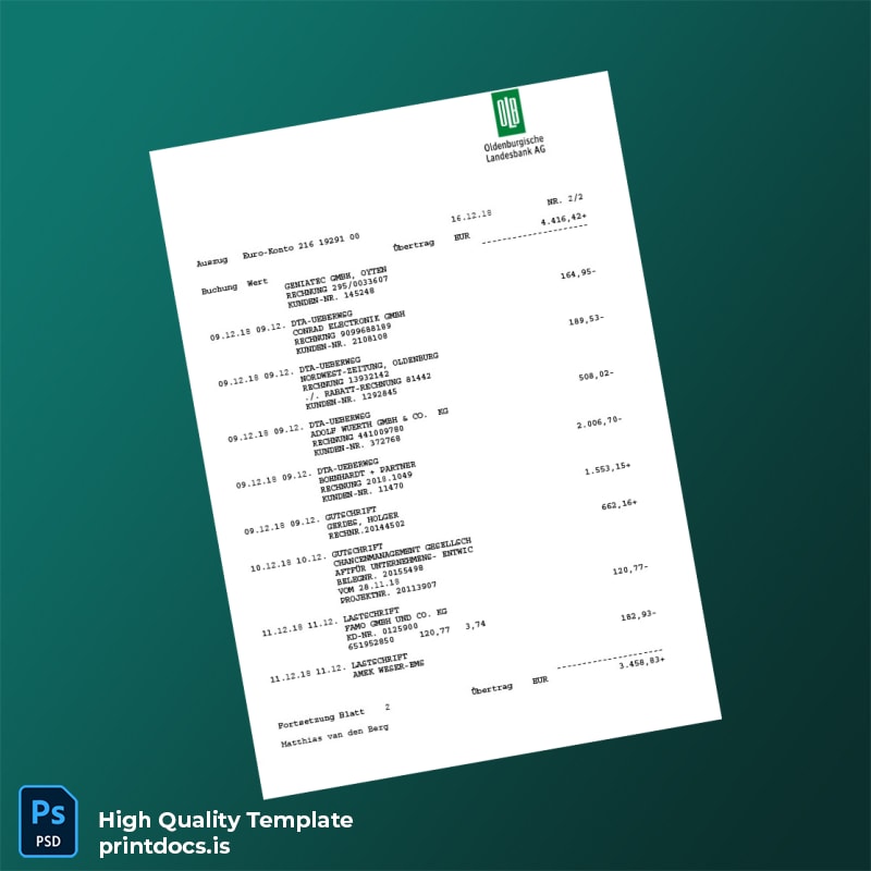 Germany Oldenburgische Landesbank Kontoauszug Template in Word and PDF formats