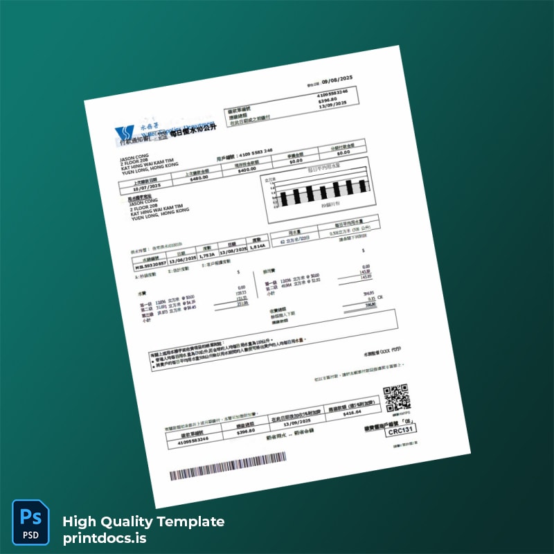 Hong Kong Water Supplies Department Editable Water Bill Template
