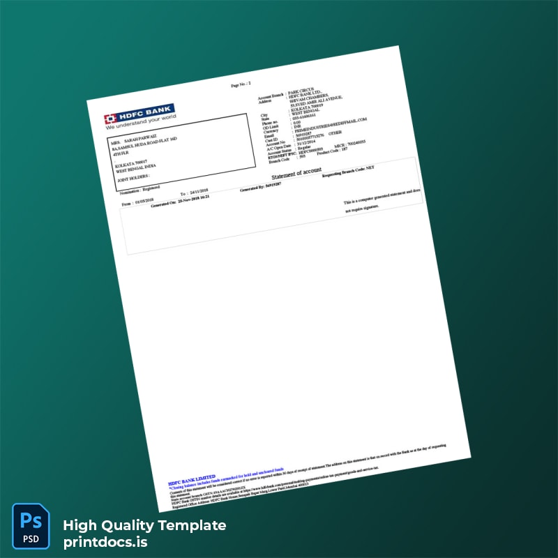 Effortlessly Create Professional Bank Statements with Our HDFC Bank Account Statement Template