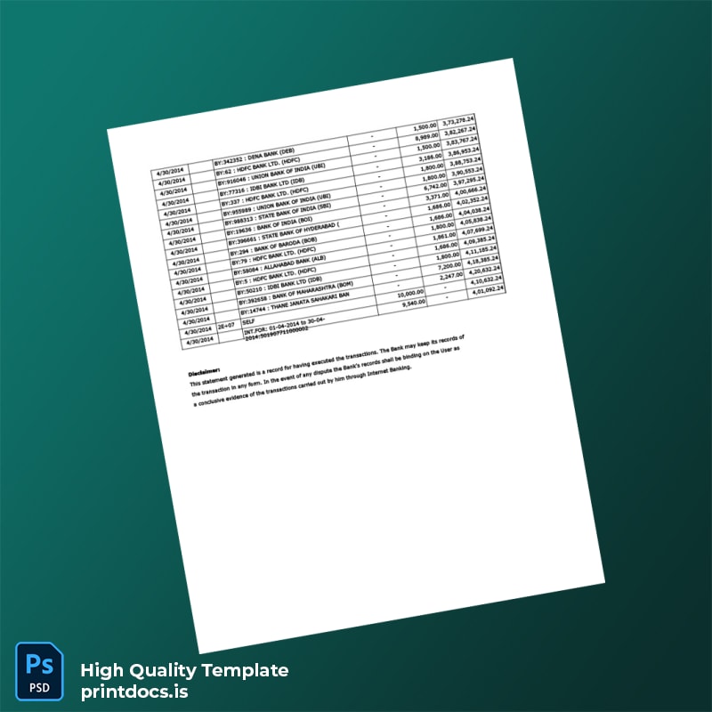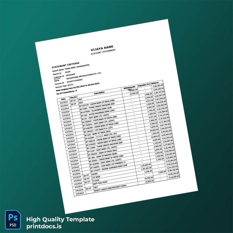 India Vijaya Bank Statement Template – Streamline Your Documentation