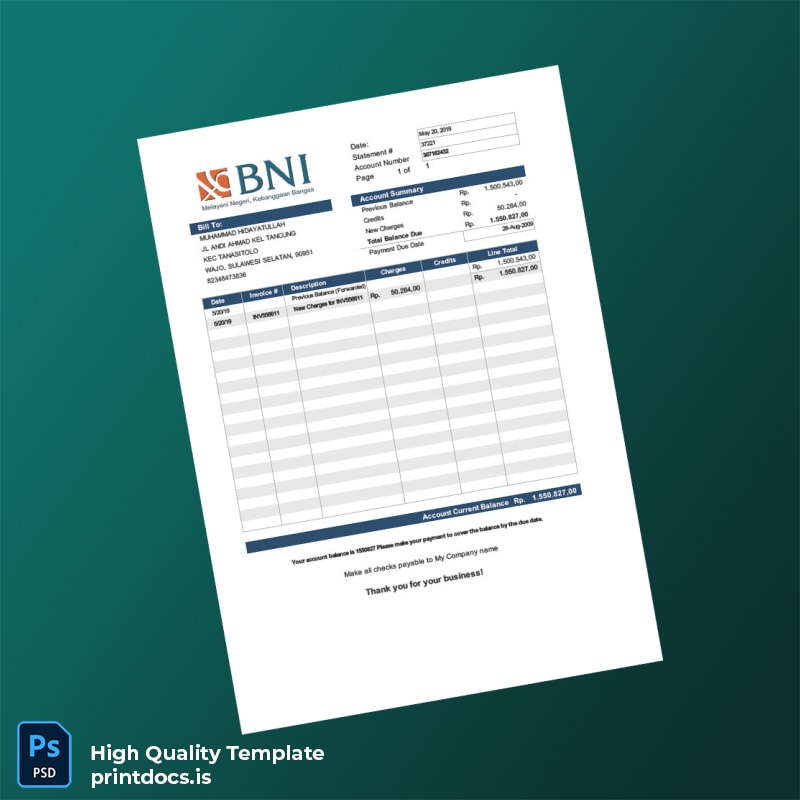 Designed to cater to professionals across various sectors, our Indonesia Bank Statement Template offers: