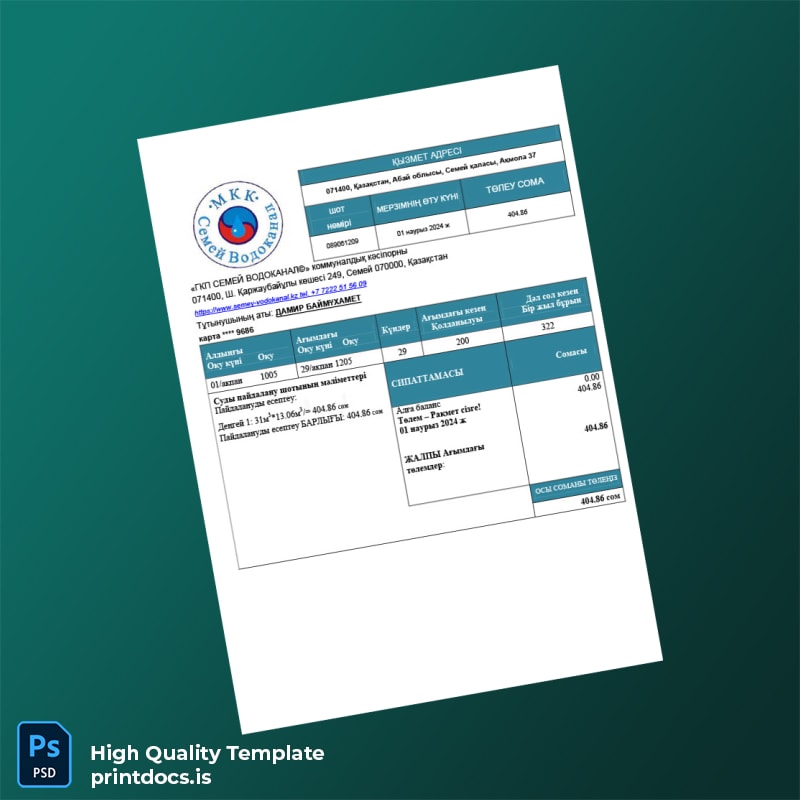 Kazakhstan Editable Water Bill Template in Word and PDF Formats