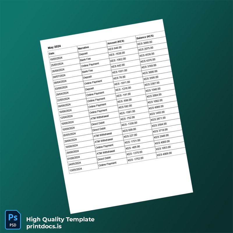 Our Kenya Kenya National Bank Bank Statement Template comes loaded with competitive features to ensure your experience is effortless and professional: