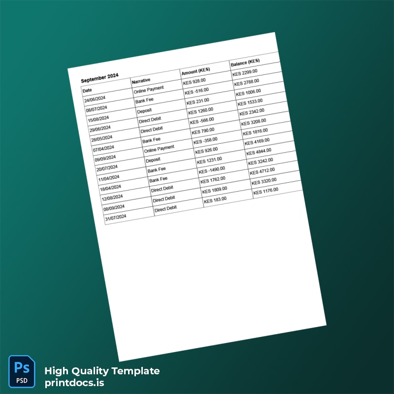 Introducing the Kenya National Bank Bank Statement Template, an essential tool tailored for professionals who find themselves in need of editable, authentic-looking bank statements. Available in both Word and PDF formats, this template is designed to facilitate quick and seamless modifications for your banking documentation.