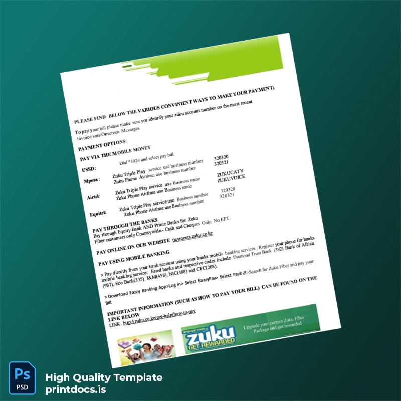 Designed for professionals who require a reliable and editable utility bill proof of address template, the Kenya Wananchi Group K Ltd Editable Internet Bill Template in Word and PDF formats offers a seamless solution for quick and legitimate document replacement. This versatile utility bill template caters to those needing an accurate, fillable document for identification, verification, or administrative purposes.