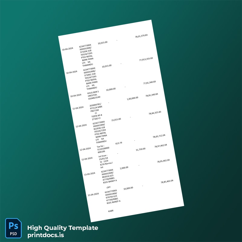 Nepal PTR Bank Statement Template in Word and PDF Formats