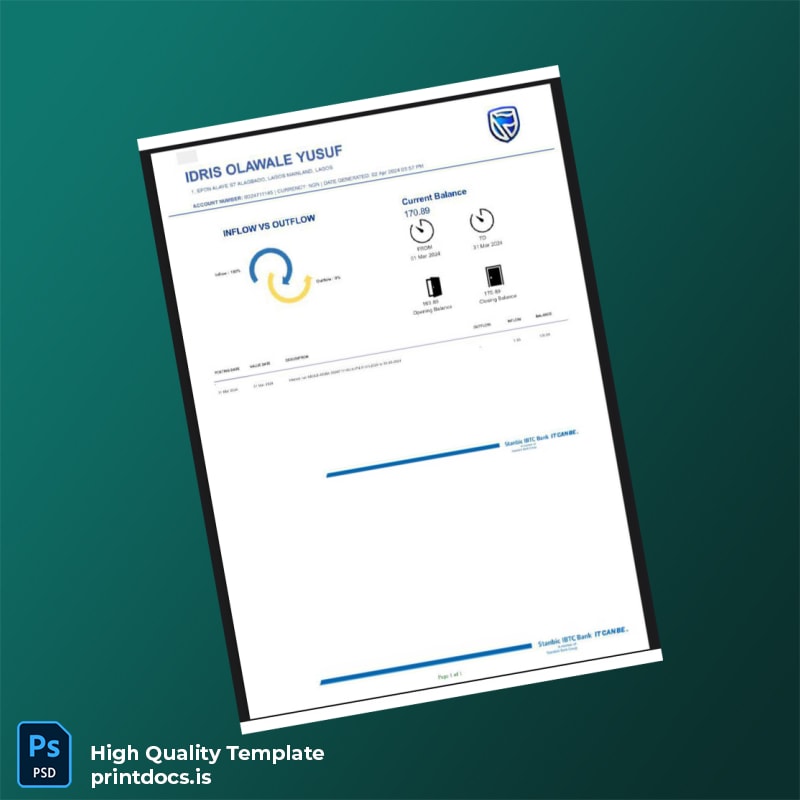 Nigeria Stanbic IBTC Bank Statement Template in Word and PDF formats