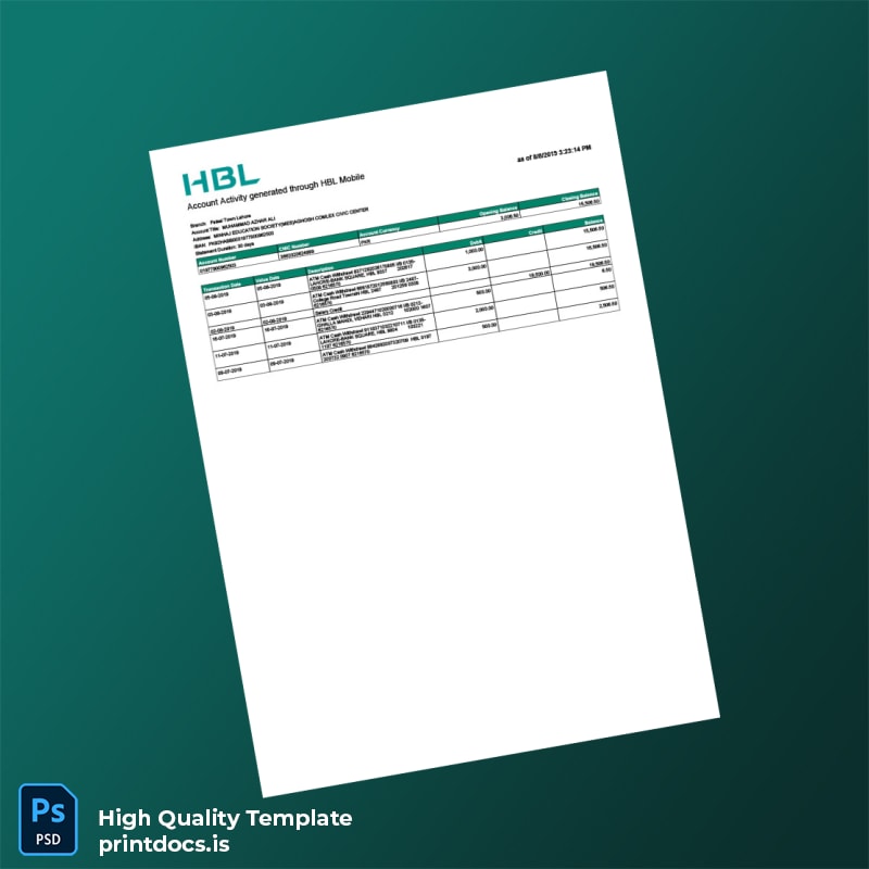 Pakistan HBL Account Statement Template – Quick Replacement for Your Needs