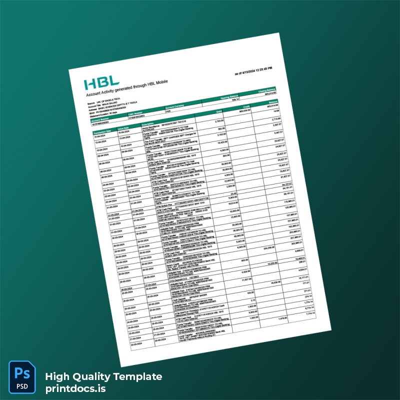 Pakistan HBL Editable Bank Statement Template in Word and PDF Formats