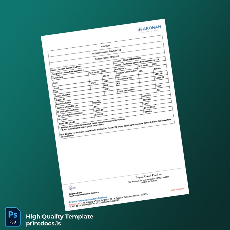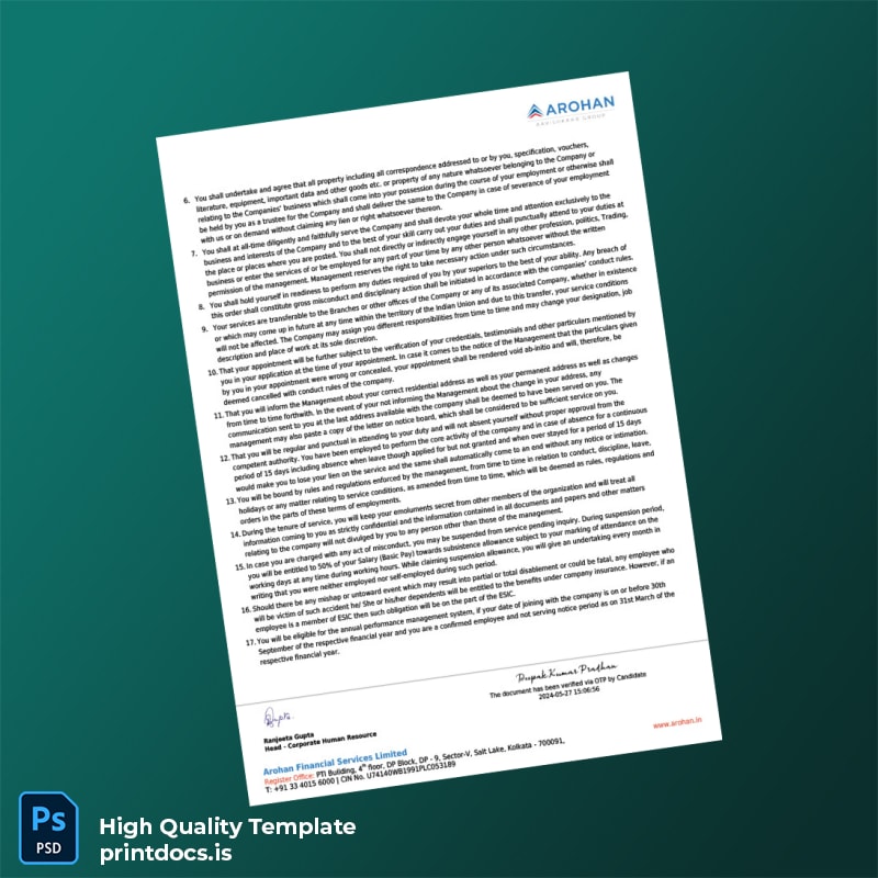 Streamline Your Employment Verification Process with Arohan Financial Services Limited Template