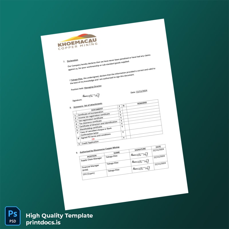 Printable Botswana Vendor Registration Form Template (Word & PDF) 3 page
