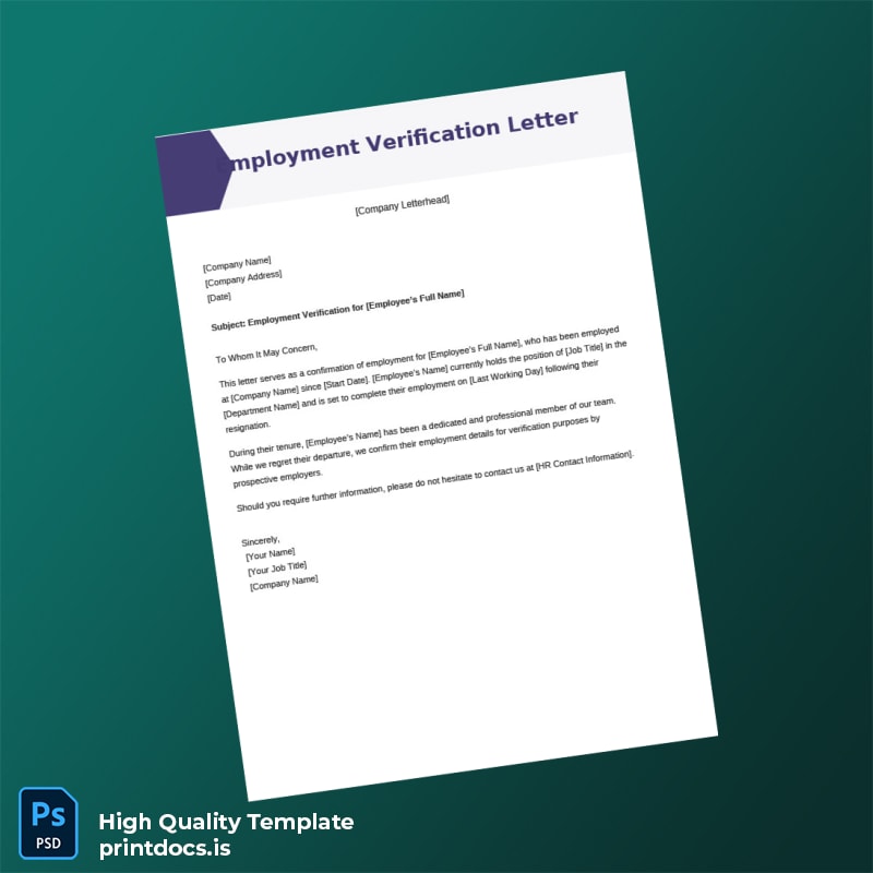 Ensure your employment verification needs are met with the Company Name Employment Verification Letter Template, available in both Word and PDF formats. This editable and printable template is designed for HR professionals, employers, and administrative staff who require a reliable and polished proof of employment letter swiftly and accurately.