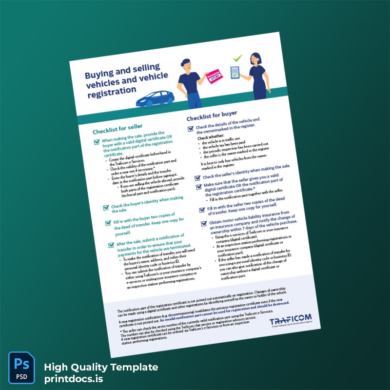 The Finland Traficom Vehicle Registration Certificate Template, available in editable Word and PDF formats, is designed for professionals who require quick and accurate vehicle documentation. Whether you need to update existing records or generate a replacement after loss or theft, this template offers a seamless solution tailored for Finnish vehicle compliance.