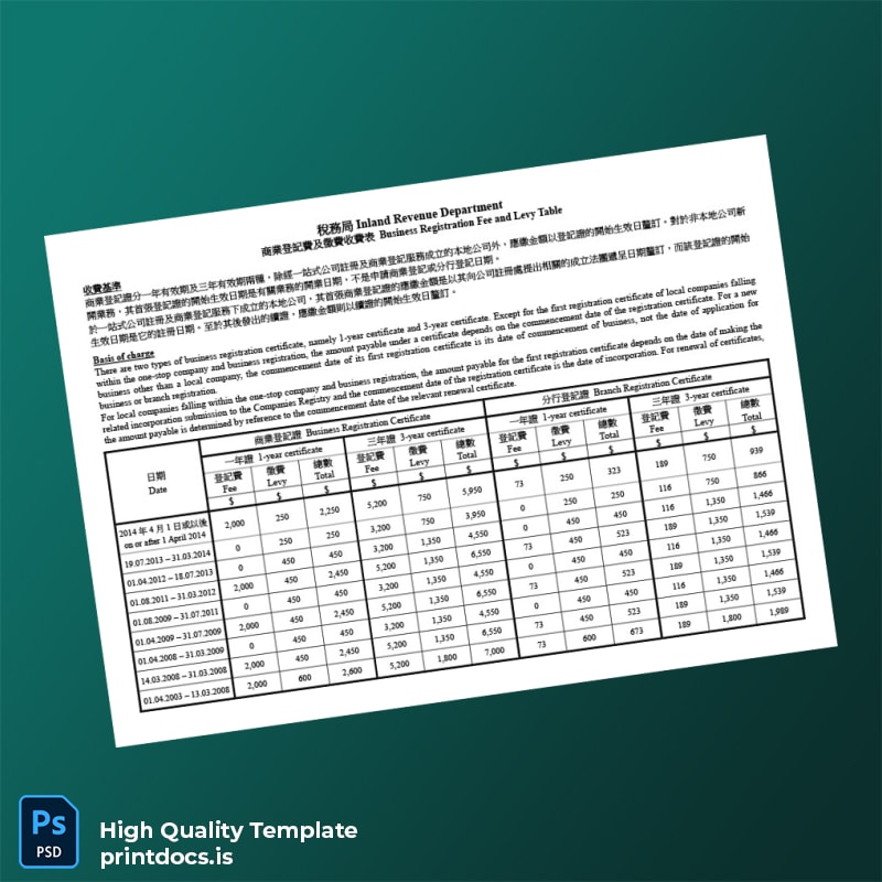 Be the first to review “Printable Hong Kong Companies Registry Business Registration Certificate Template (Word & PDF)”