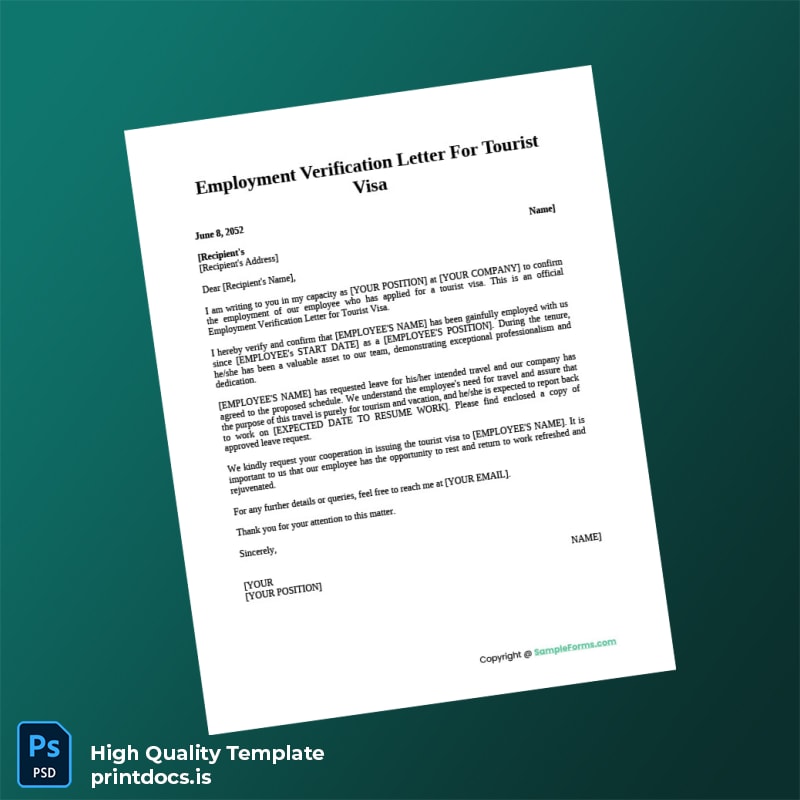 Don’t let cumbersome paperwork slow down your operations. Invest in this comprehensive employment verification letter template now to create polished, accurate, and trustworthy letters with ease. Elevate your HR documentation process and deliver exceptional service every time.