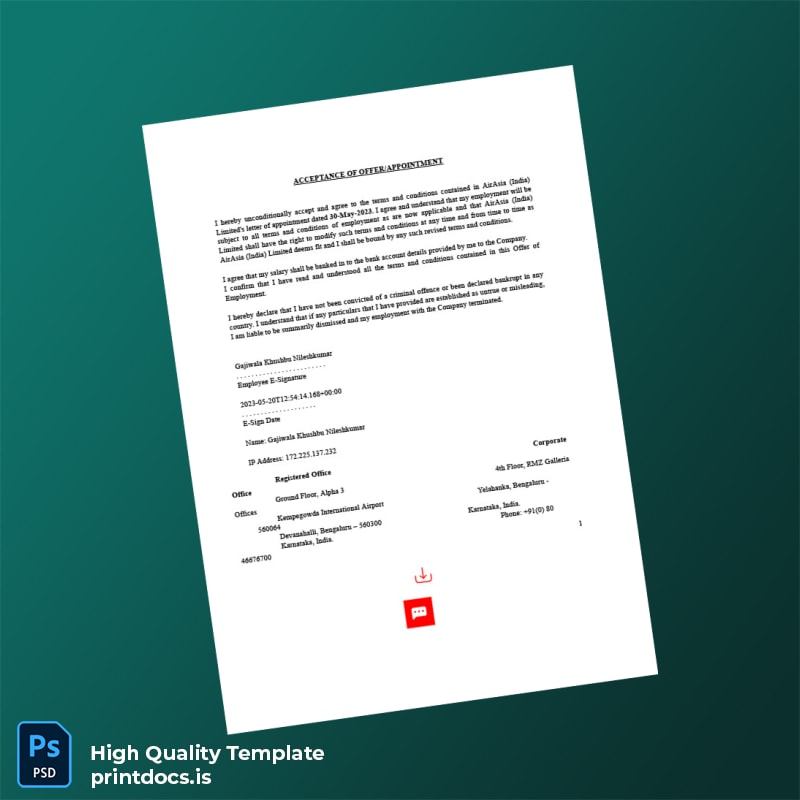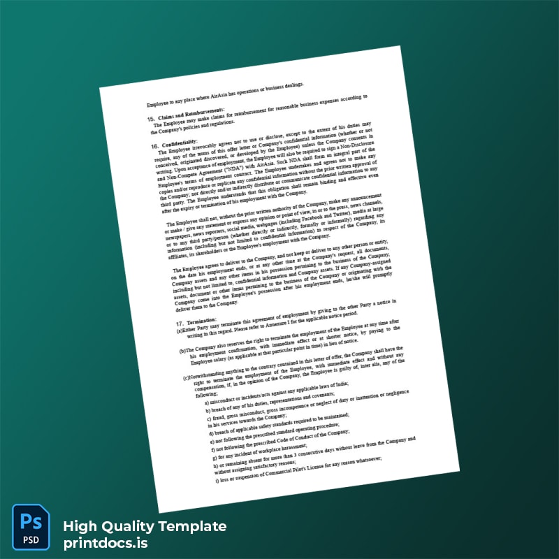 Be the first to review “Printable India AirAsia Employment Verification Letter Template (Word & PDF) 8 page”