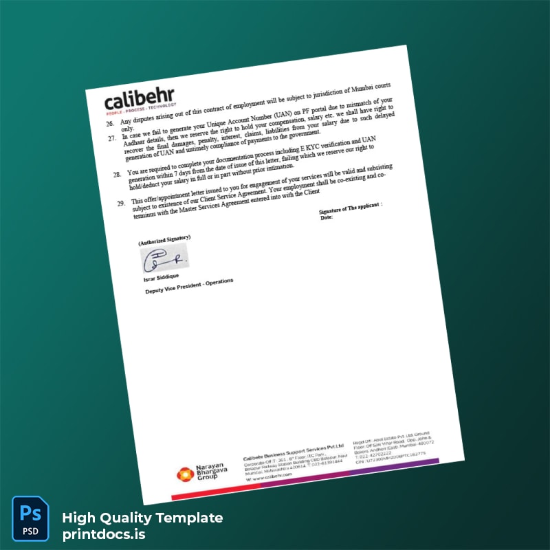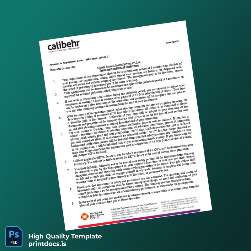 Effortlessly create a professional and reliable employment verification letter using the India Calibehr Business Support Services Pvt Ltd Employment Verification Letter Template. Designed specifically for busy HR professionals, recruiters, and business support specialists, this editable Word and PDF template ensures that you can quickly validate employment details with precision and ease.