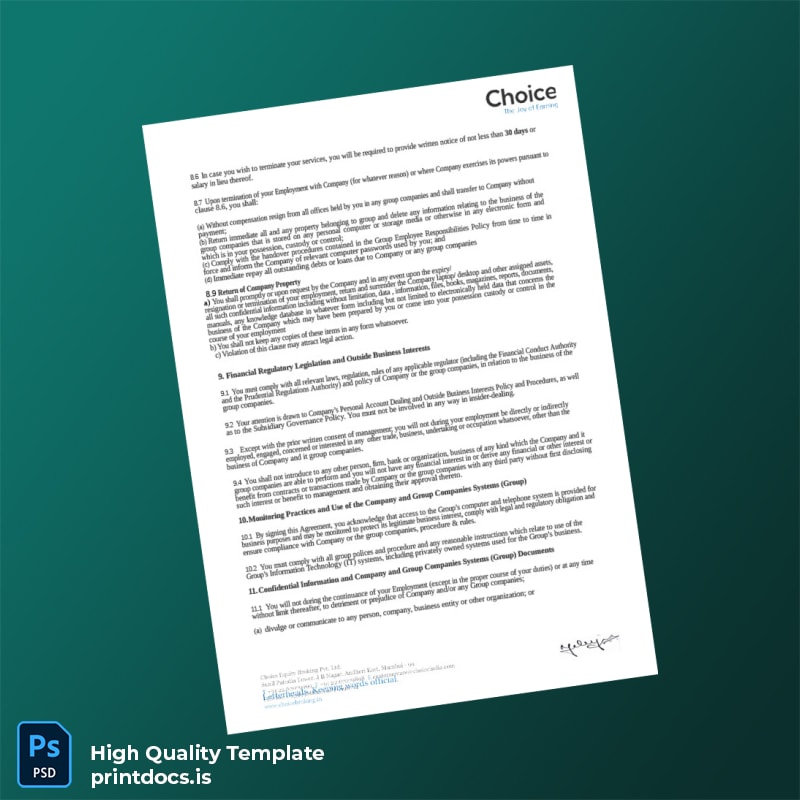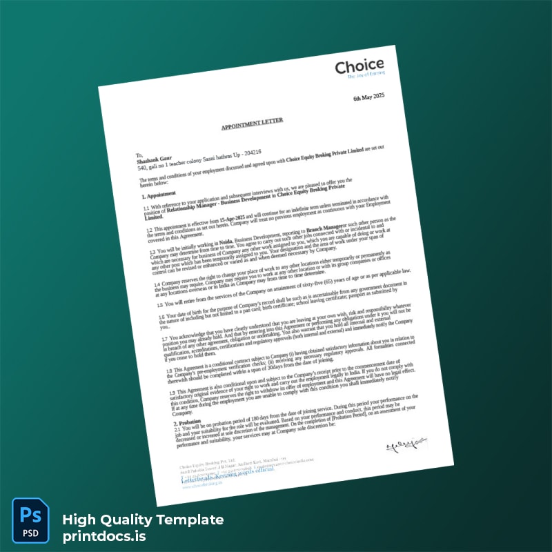 Professional India Choice Equity Broking Appointment Letter Template for Seamless Employment Verification