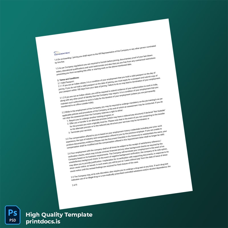 Be the first to review “Printable India Concentrix Daksh Services India Private Limited Appointment Letter Template (Word & PDF) 6 page”