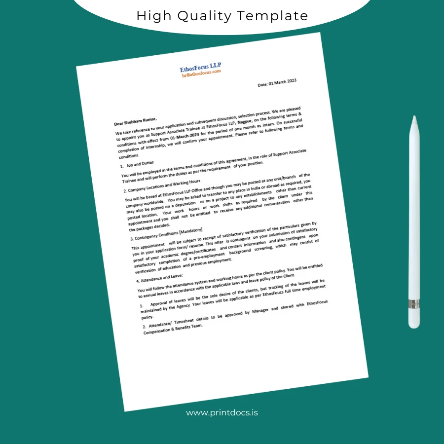 Don’t let slow documentation hold back your professional progress. Take control with the India EthosFocus LLP Salary Certificate Template and craft a clear, compliant, and editable certificate that answers your verification needs instantly. Purchase now to enjoy a seamless editing and printing experience designed for modern professionals.