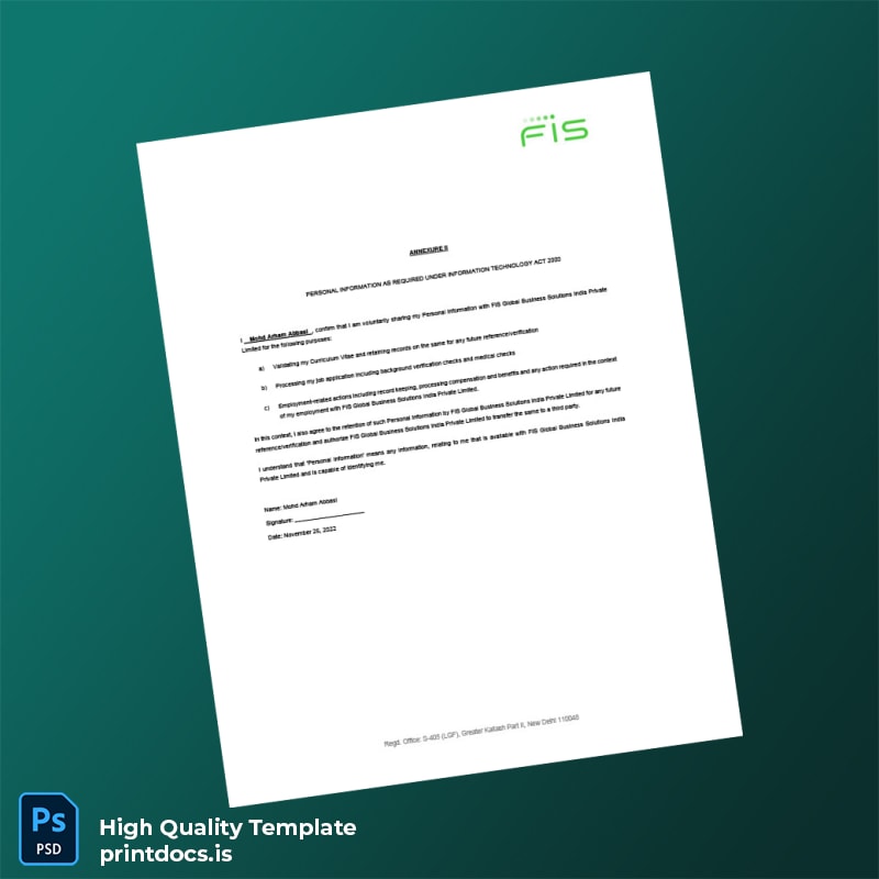 Be the first to review “Printable India FIS Global Business Solutions India Private Limited Employment Verification Letter Template (Word & PDF) 3 page”