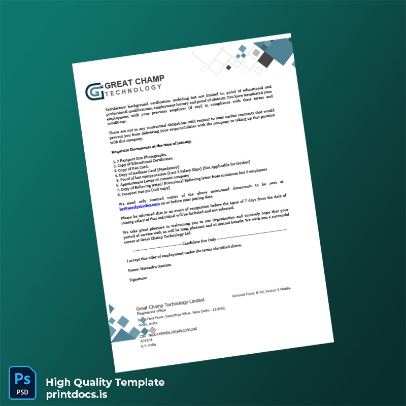 Streamline Your Employment Documentation with the India Great Champ Technology Ltd Employment Offer Letter Template