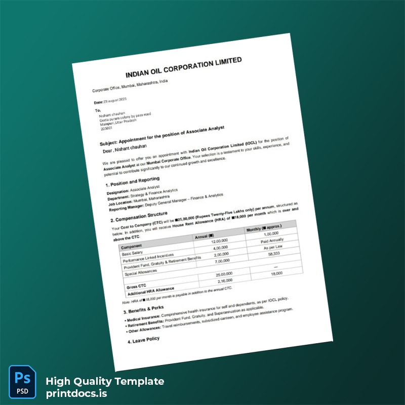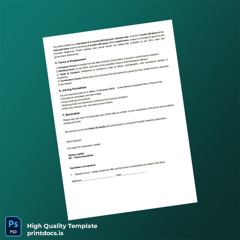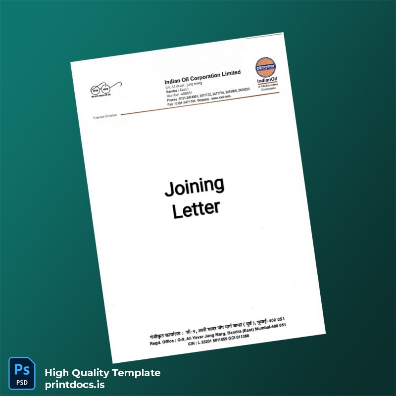 Professional India Indian Oil Corporation LTD Joining Letter Template (Word & PDF)