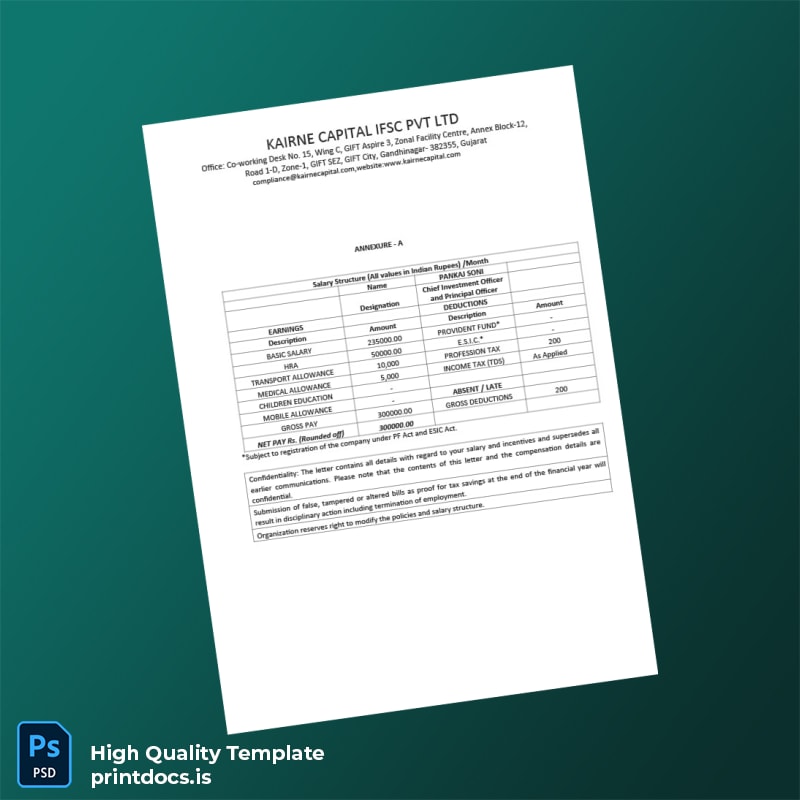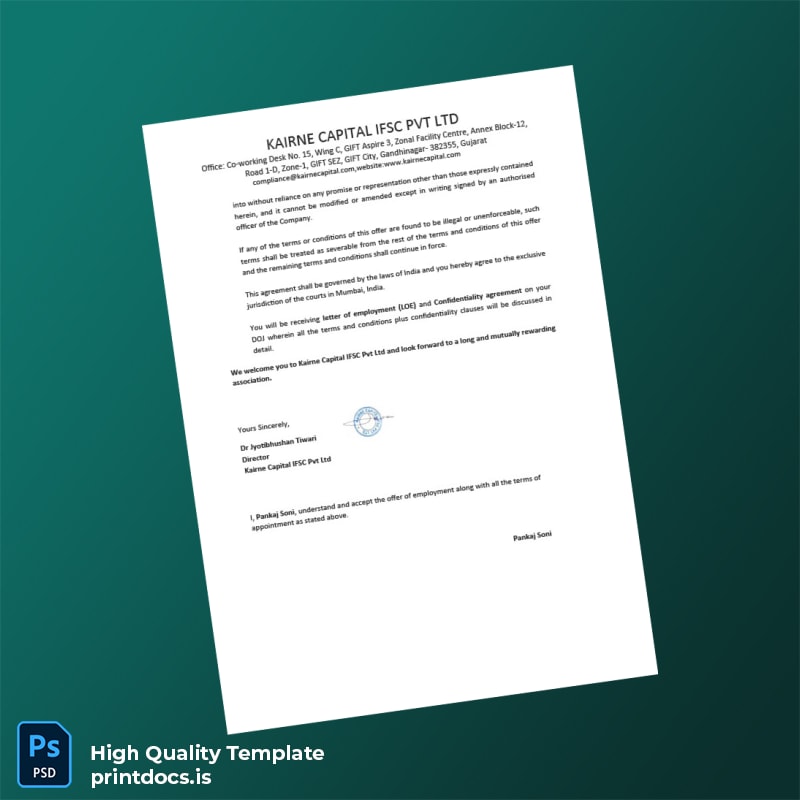 Don’t let document delays impact your professional obligations. With this reliable and easy-to-use job confirmation letter template, you can create sophisticated, error-free employment verification letters on demand. Purchase and download your India Karine Capital ISC Pvt Ltd Employment Verification Letter Template today to ensure your employment status is confidently and clearly affirmed whenever needed.