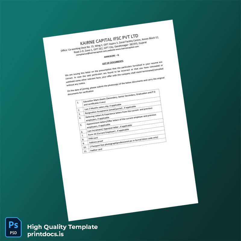 Be the first to review “Printable India Karine Capital ISC Pvt Ltd Employment Verification Letter Template (Word & PDF) 6 page”
