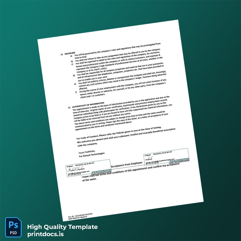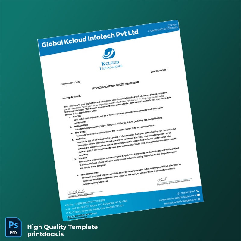 Be the first to review “Printable India Kcloud Technologies Employment Verification Letter Template (Word & PDF) 4 page”
