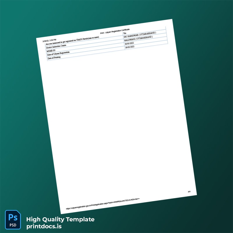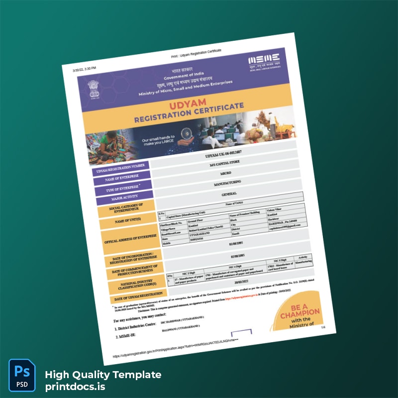 Effortless India MSME Registration Certificate Template (Word & PDF)