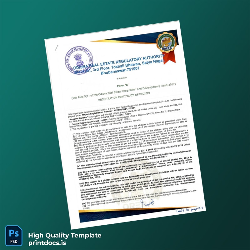 Editable India Odisha Registration Certificate Template: Streamline Your Business Documentation