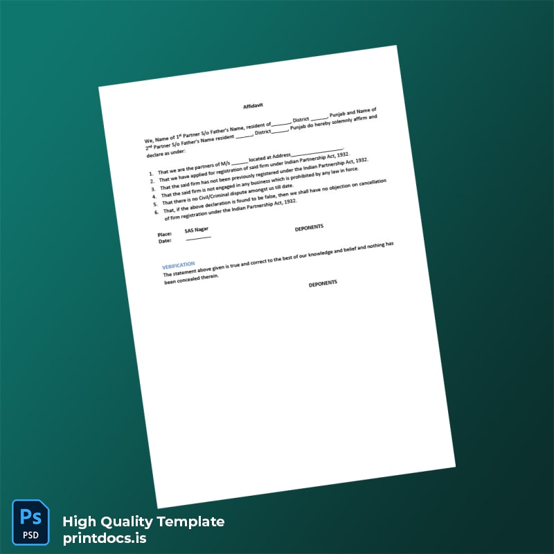 Be the first to review “Printable India Partnership Firm Registration Certificate Template (Word & PDF) 6 page”